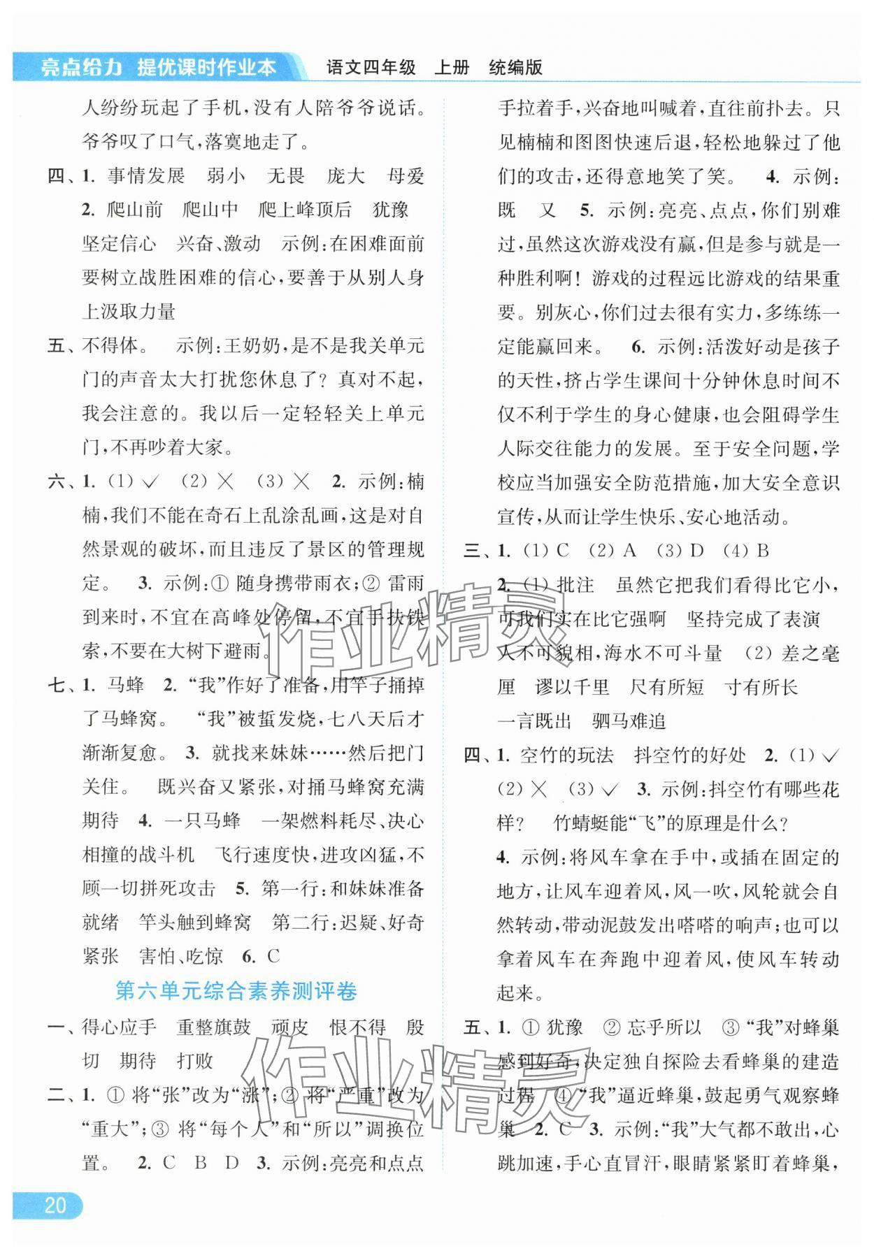 2025年亮点给力提优课时作业本四年级语文上册统编版参考答案第20页