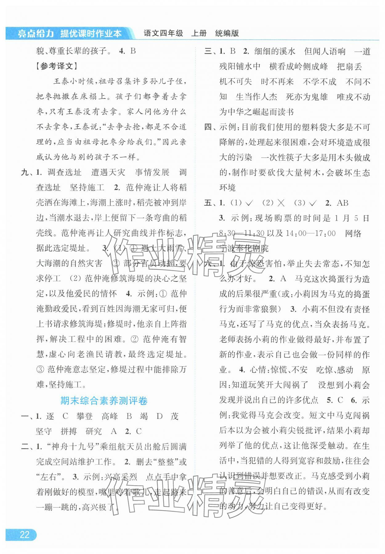 2025年亮点给力提优课时作业本四年级语文上册统编版参考答案第22页