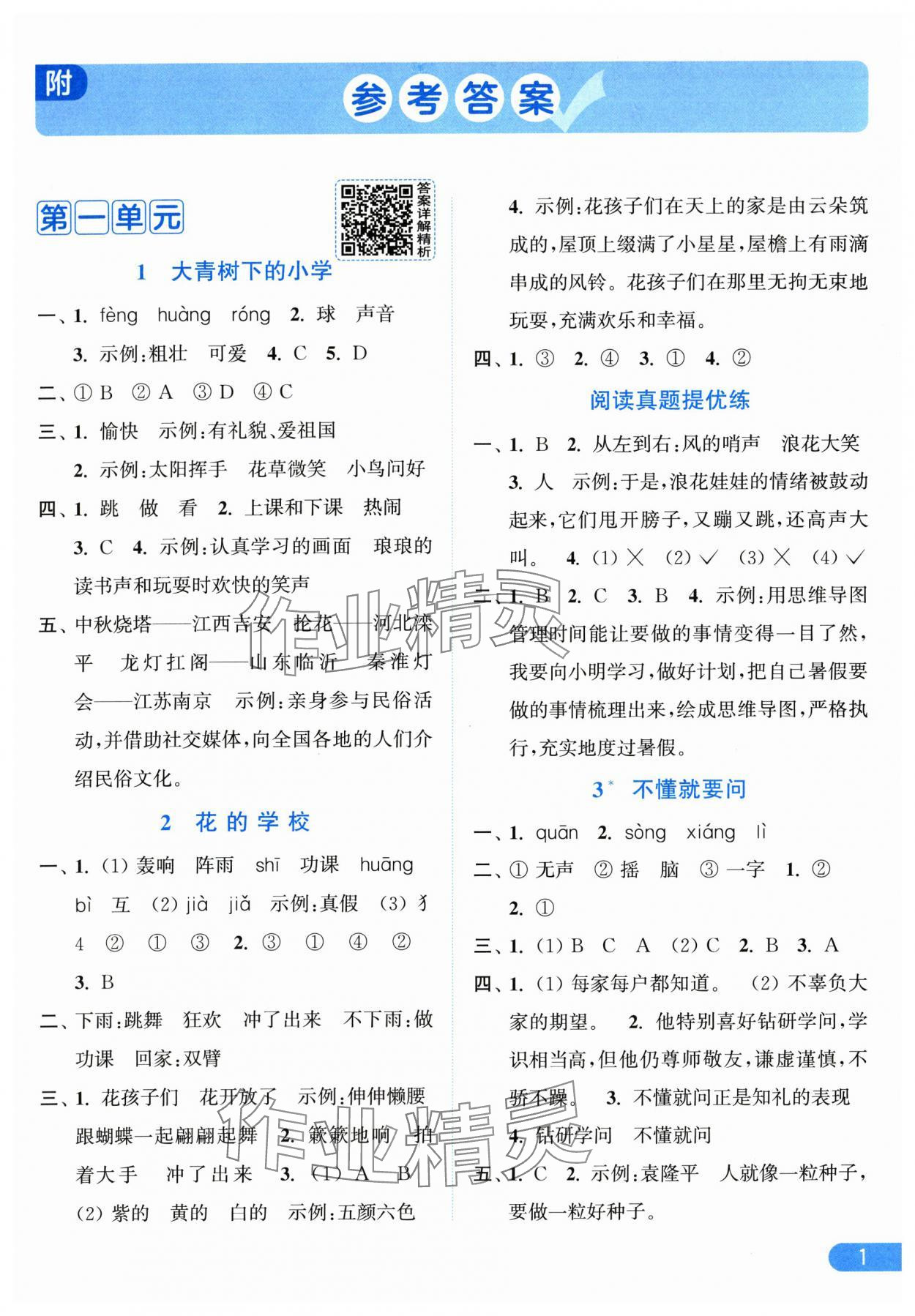 2025年亮点给力提优课时作业本三年级语文上册统编版参考答案第1页