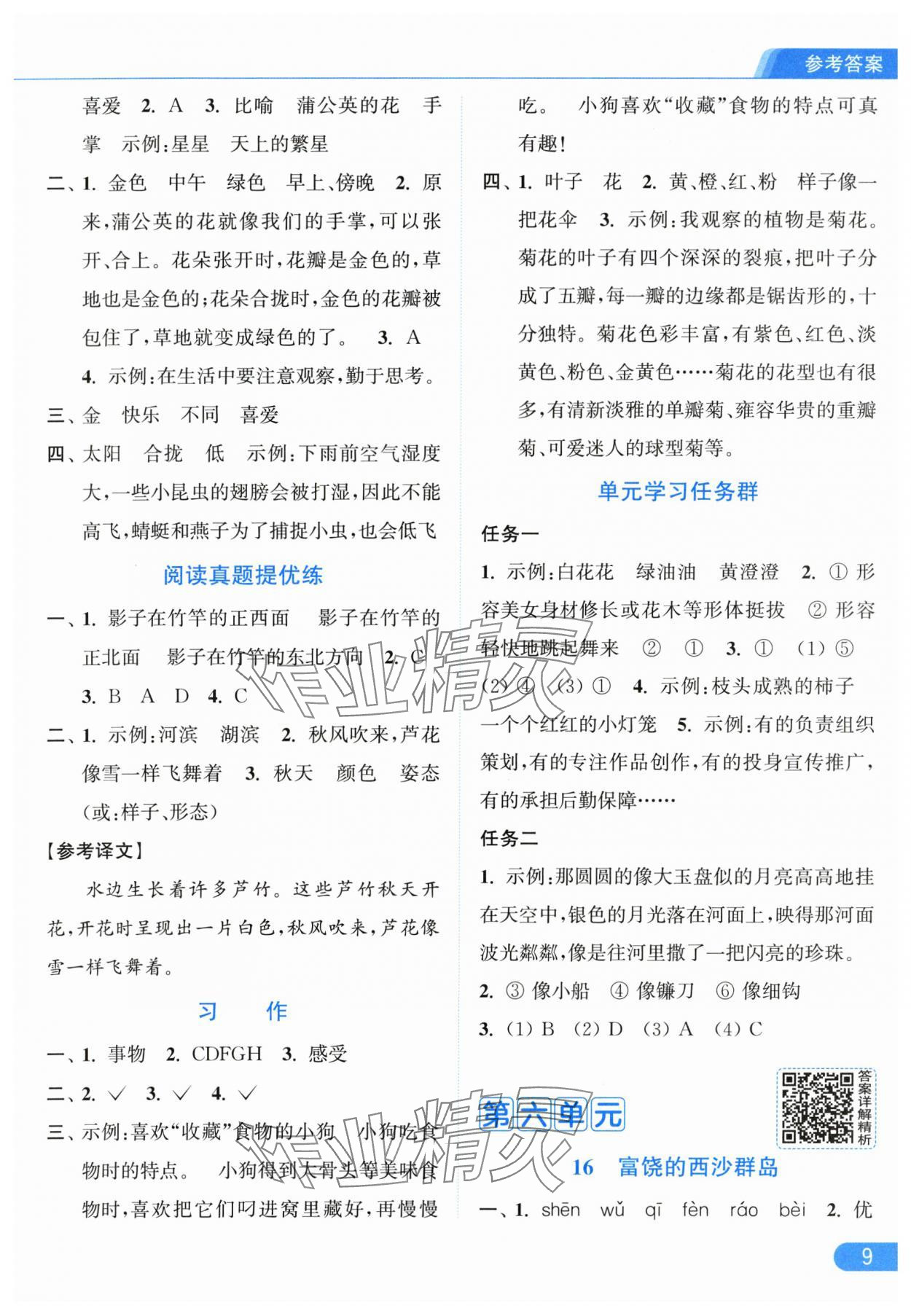 2025年亮点给力提优课时作业本三年级语文上册统编版参考答案第9页