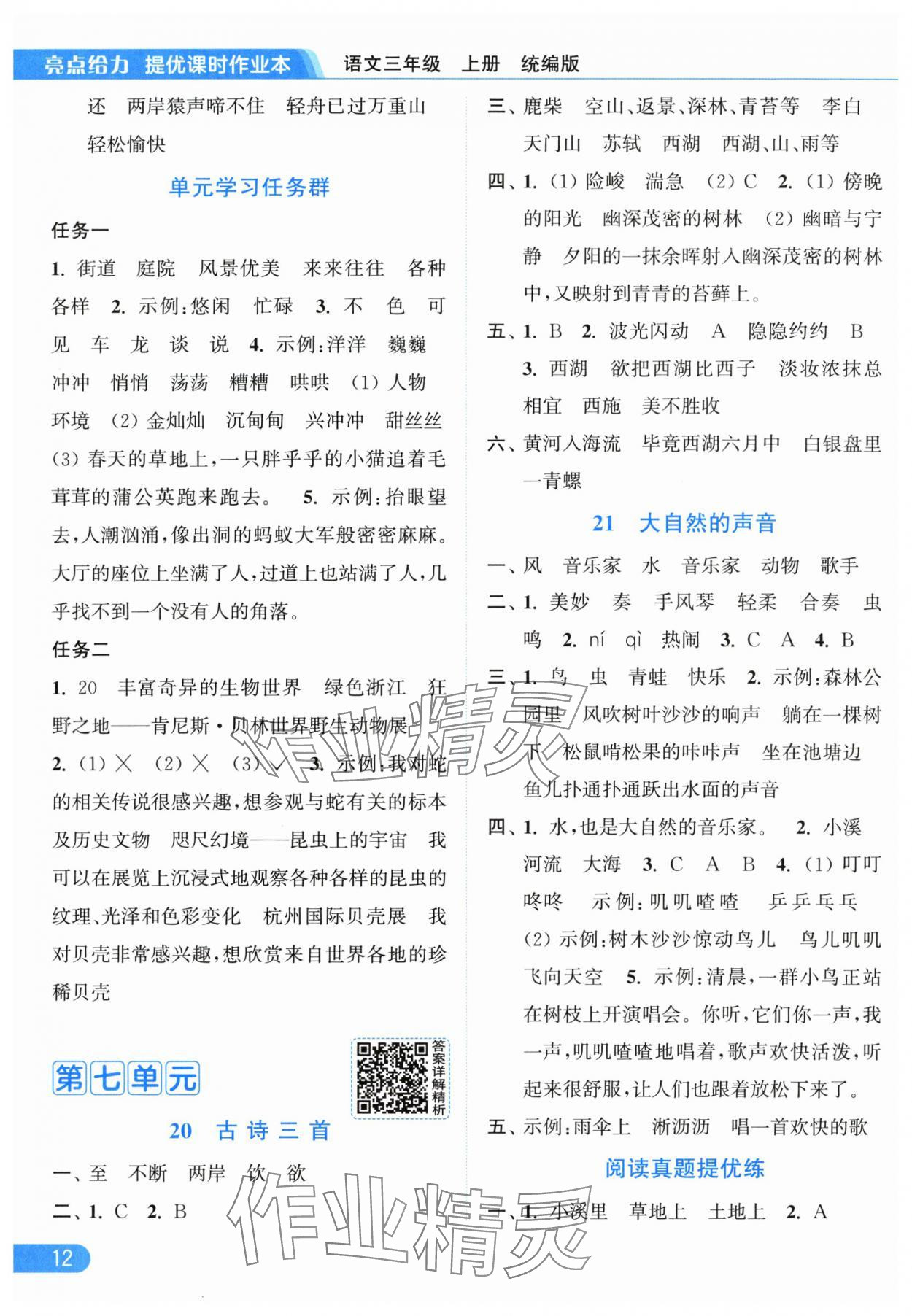 2025年亮点给力提优课时作业本三年级语文上册统编版参考答案第12页