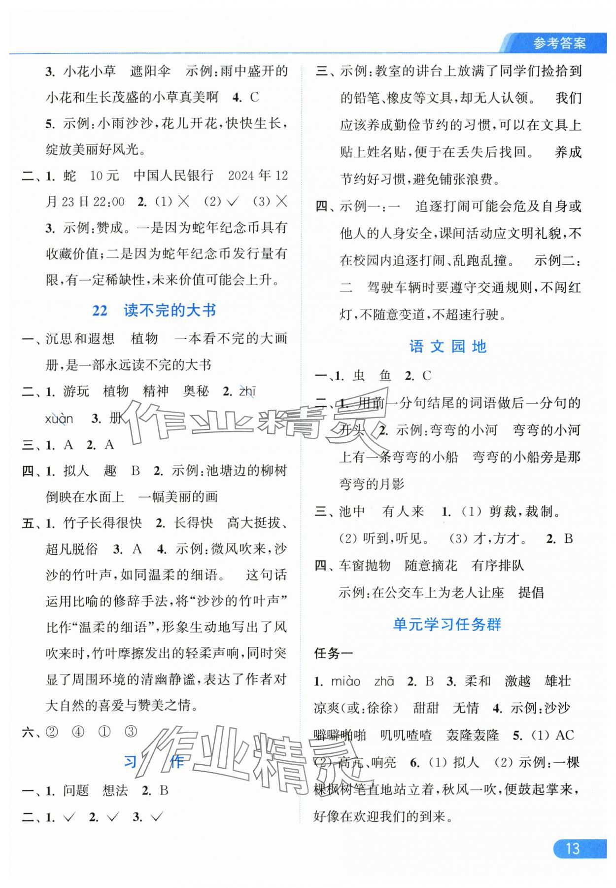 2025年亮点给力提优课时作业本三年级语文上册统编版参考答案第13页