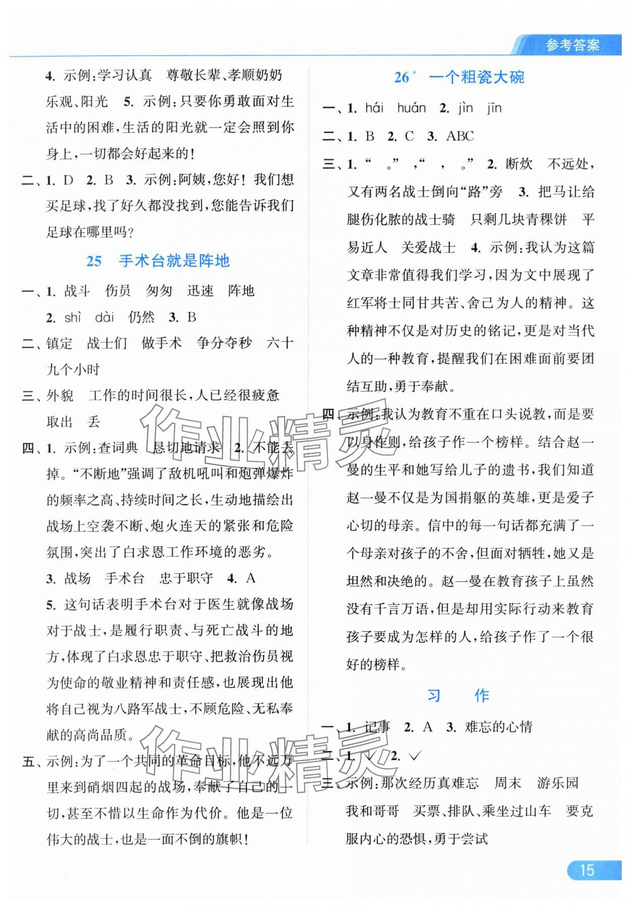 2025年亮点给力提优课时作业本三年级语文上册统编版参考答案第15页