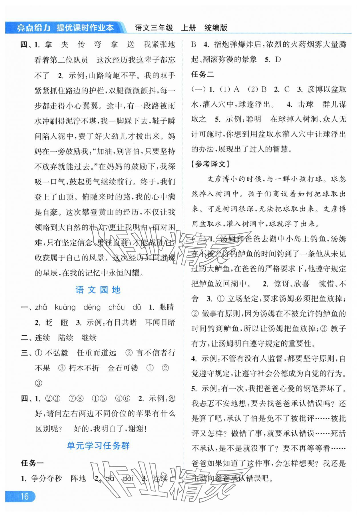 2025年亮点给力提优课时作业本三年级语文上册统编版参考答案第16页