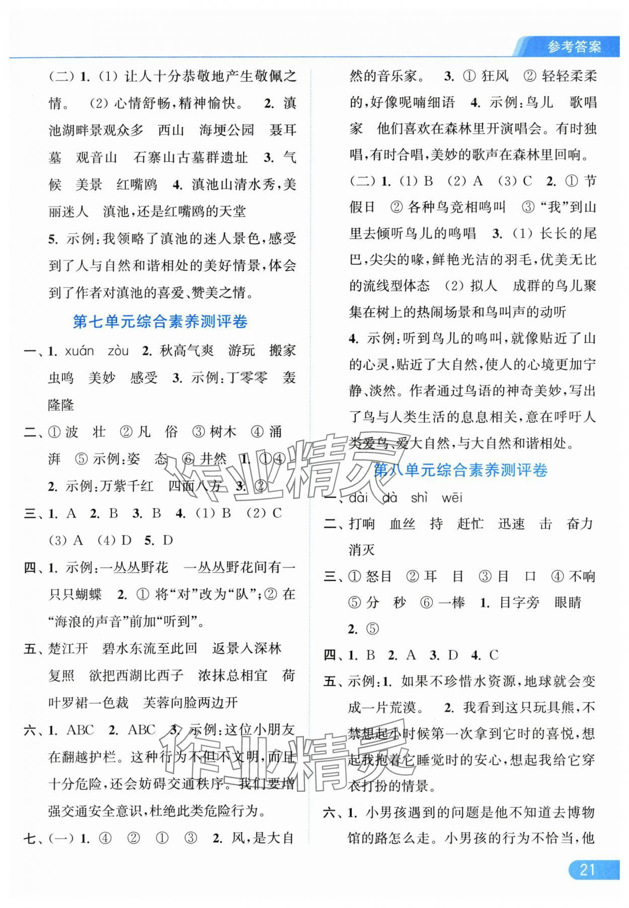 2025年亮点给力提优课时作业本三年级语文上册统编版参考答案第21页