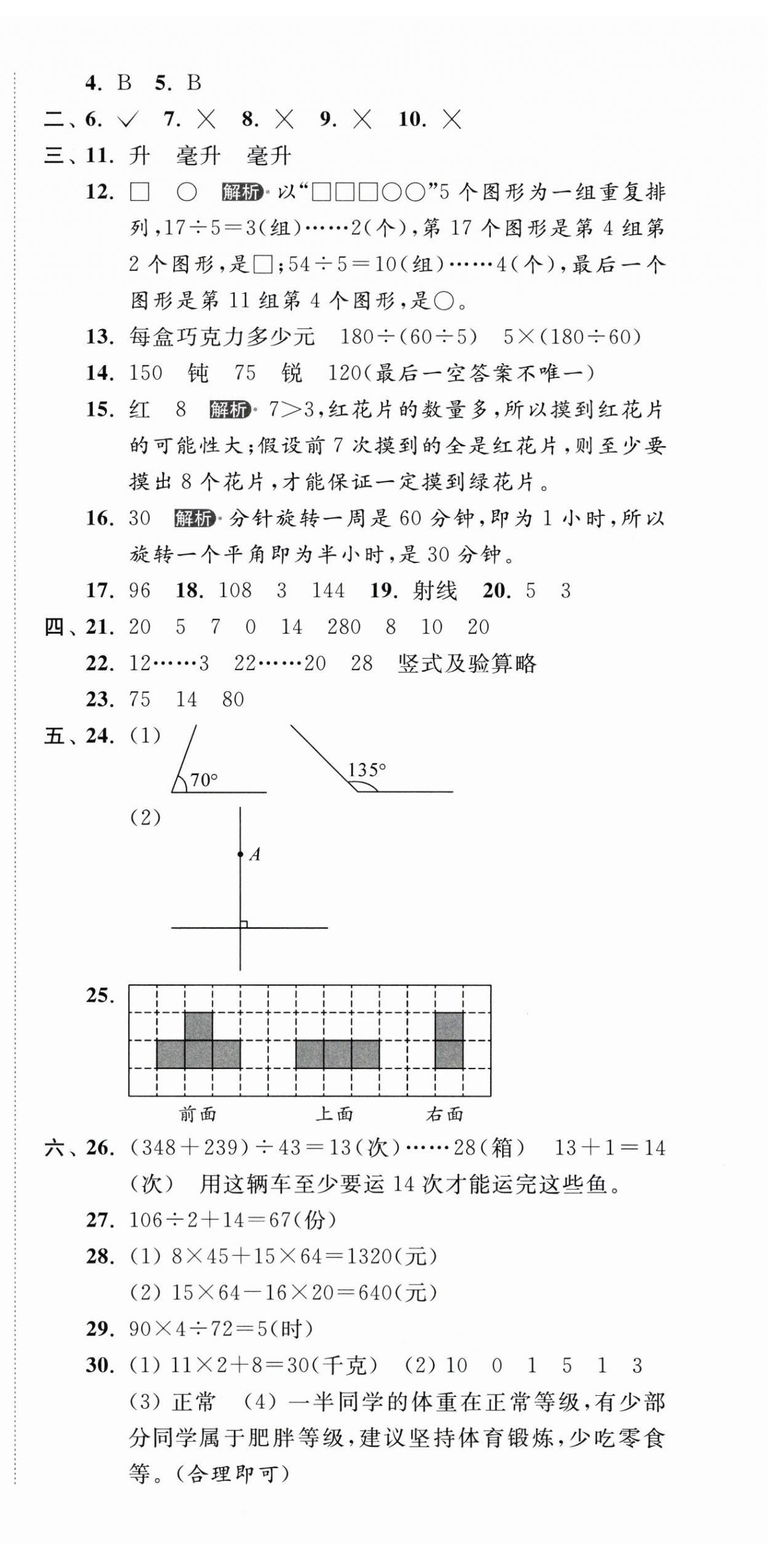 2025年亮点给力提优课时作业本四年级数学上册江苏版第44页