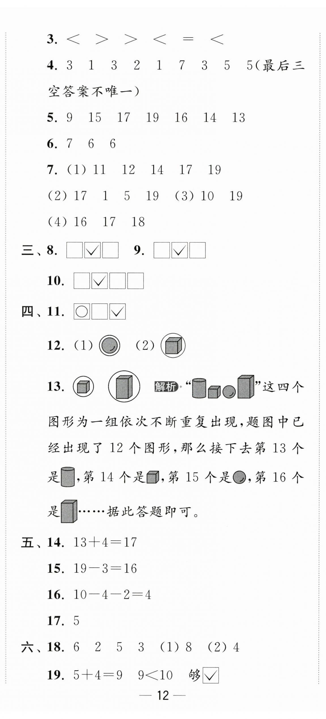 2025年亮点给力提优课时作业本一年级数学上册江苏版第43页