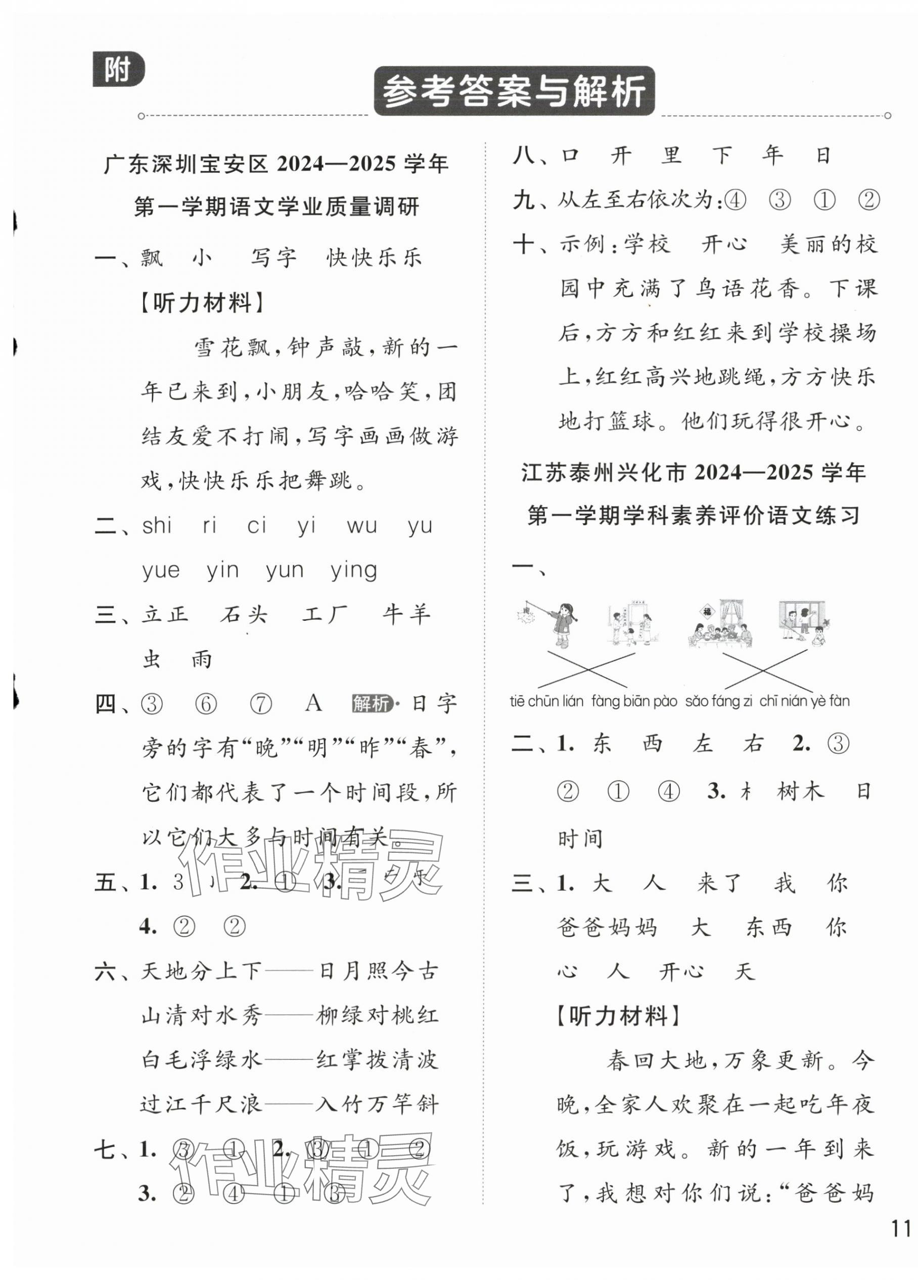2025年亮点给力提优课时作业本一年级语文上册人教版第23页