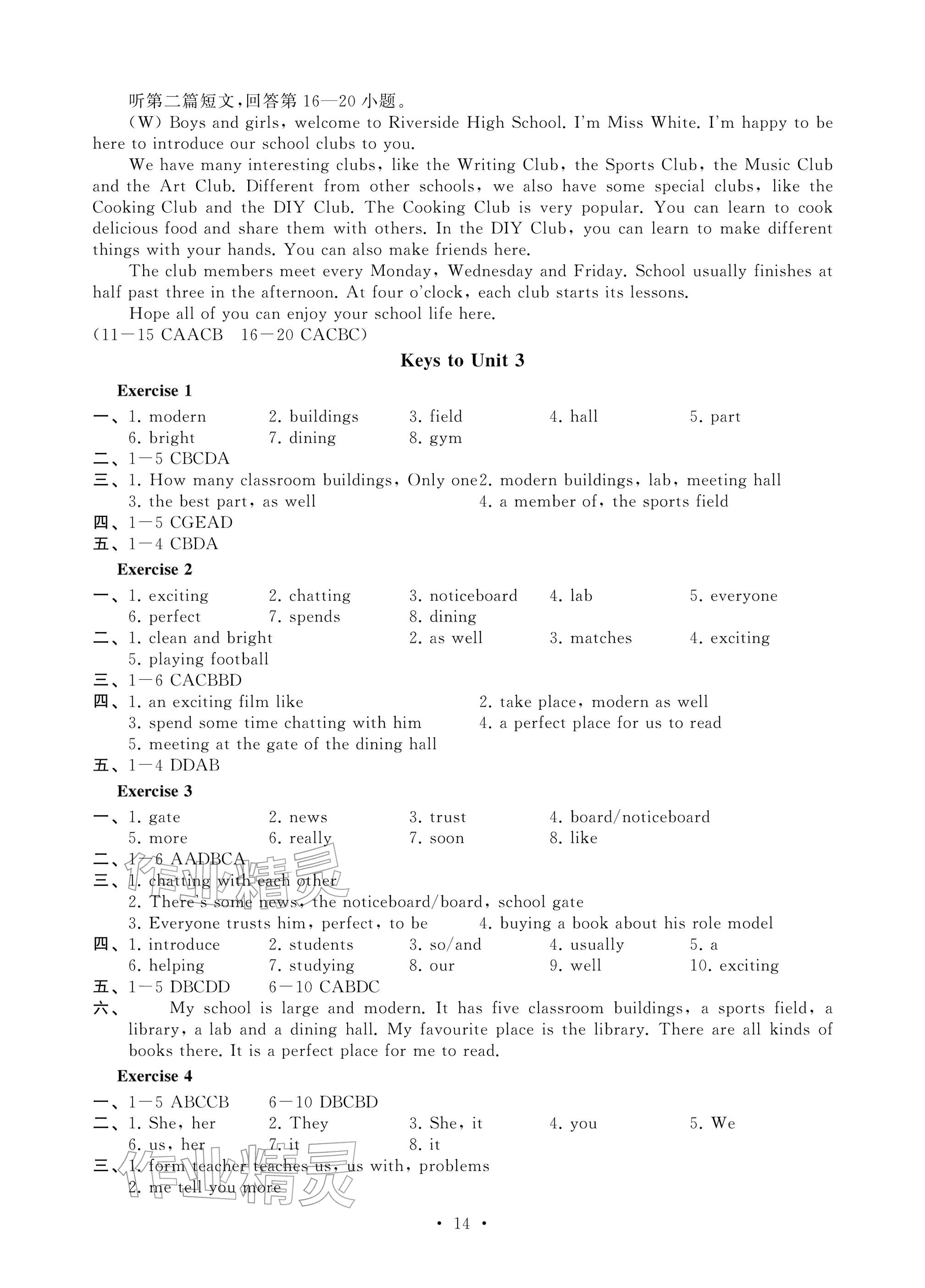 2025年综合素质随堂反馈七年级英语上册译林版苏州专版参考答案第6页