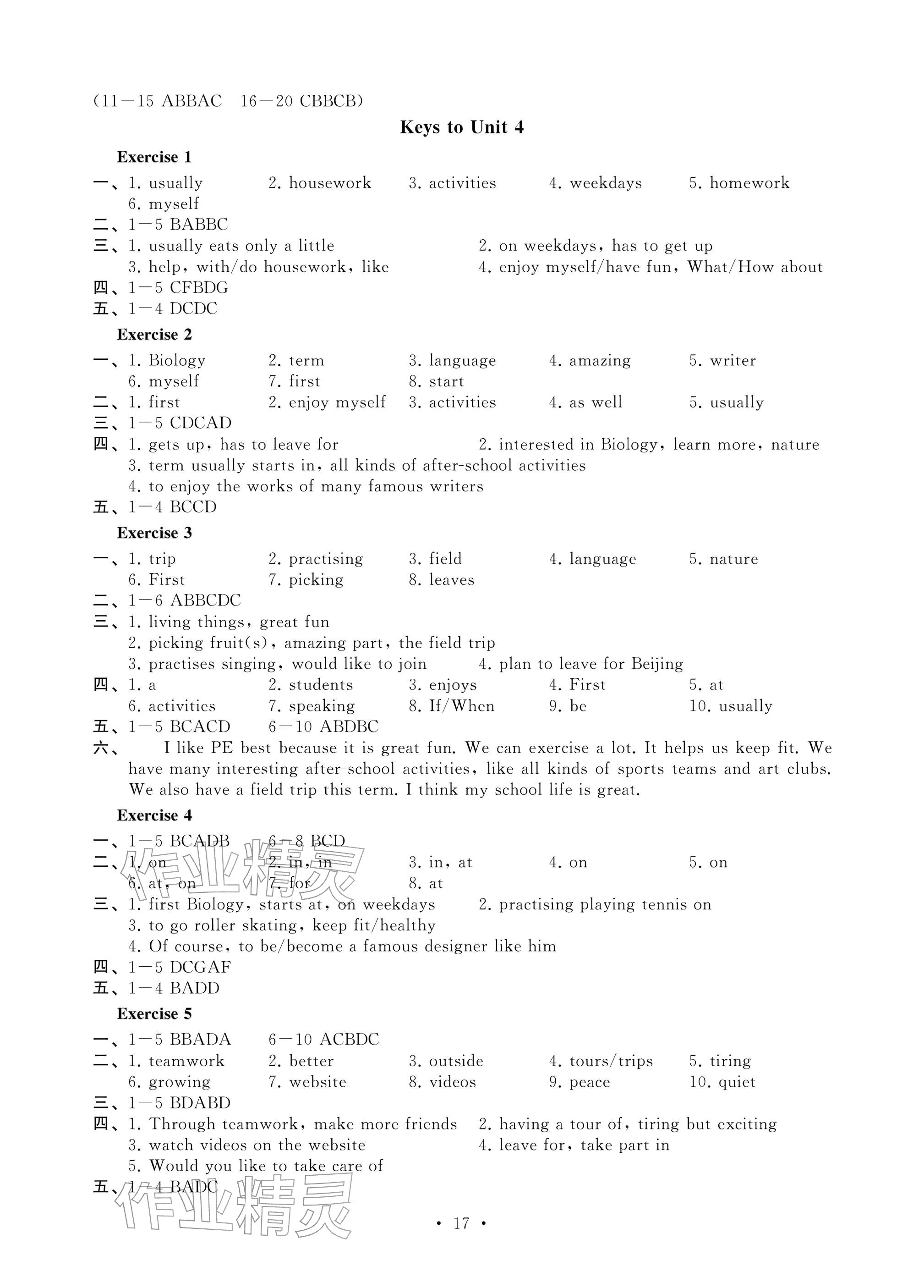 2025年综合素质随堂反馈七年级英语上册译林版苏州专版参考答案第9页