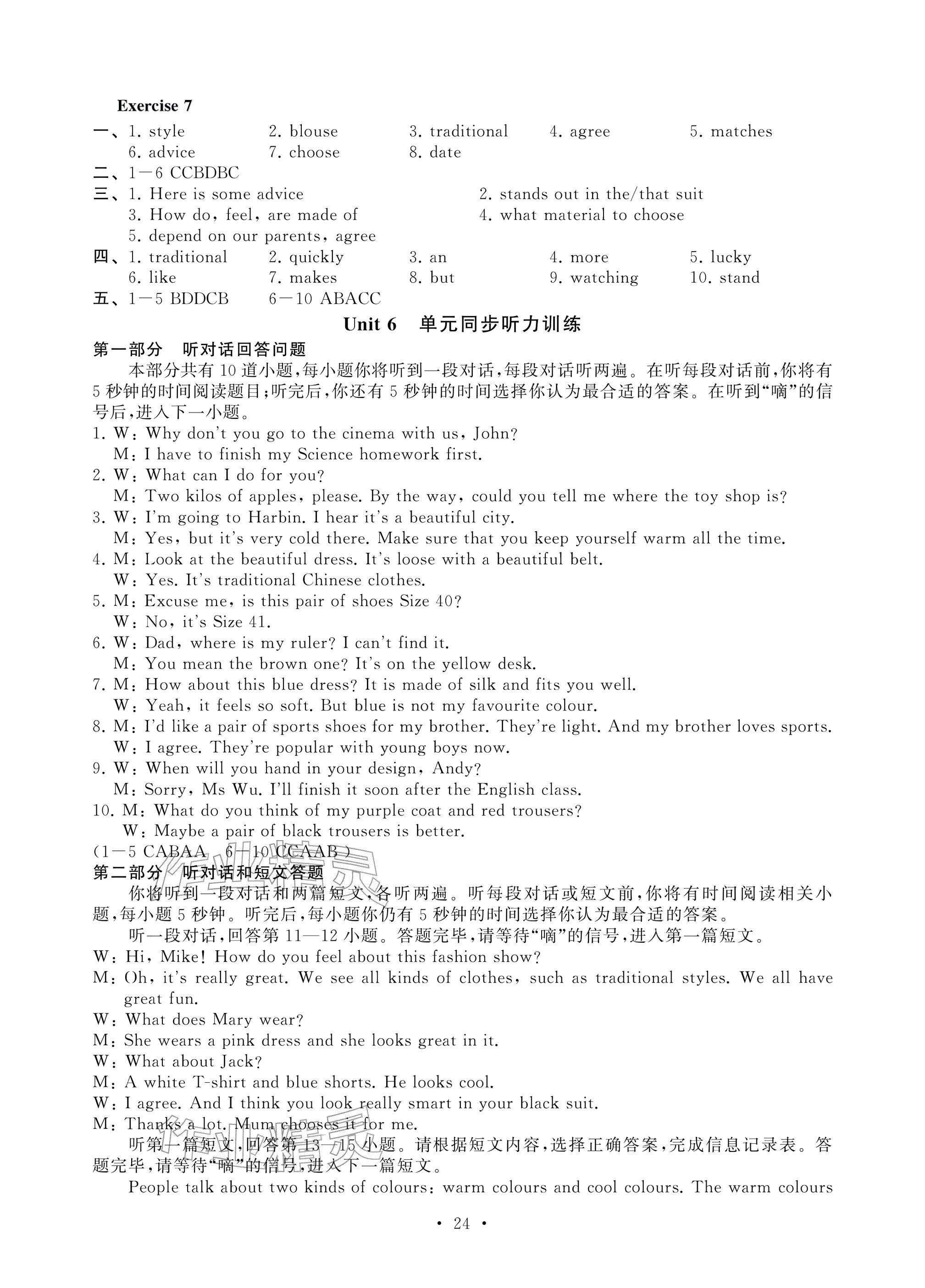 2025年综合素质随堂反馈七年级英语上册译林版苏州专版参考答案第16页