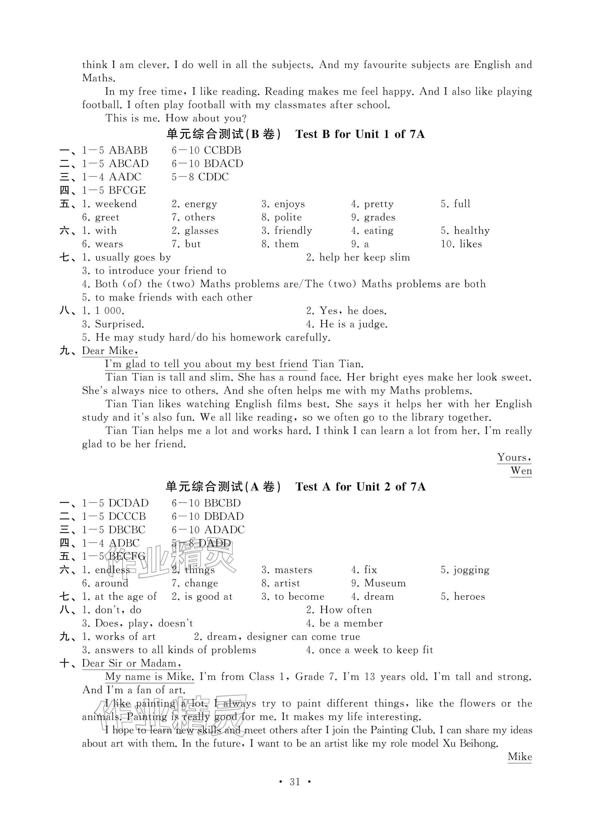 2025年综合素质随堂反馈七年级英语上册译林版苏州专版参考答案第23页
