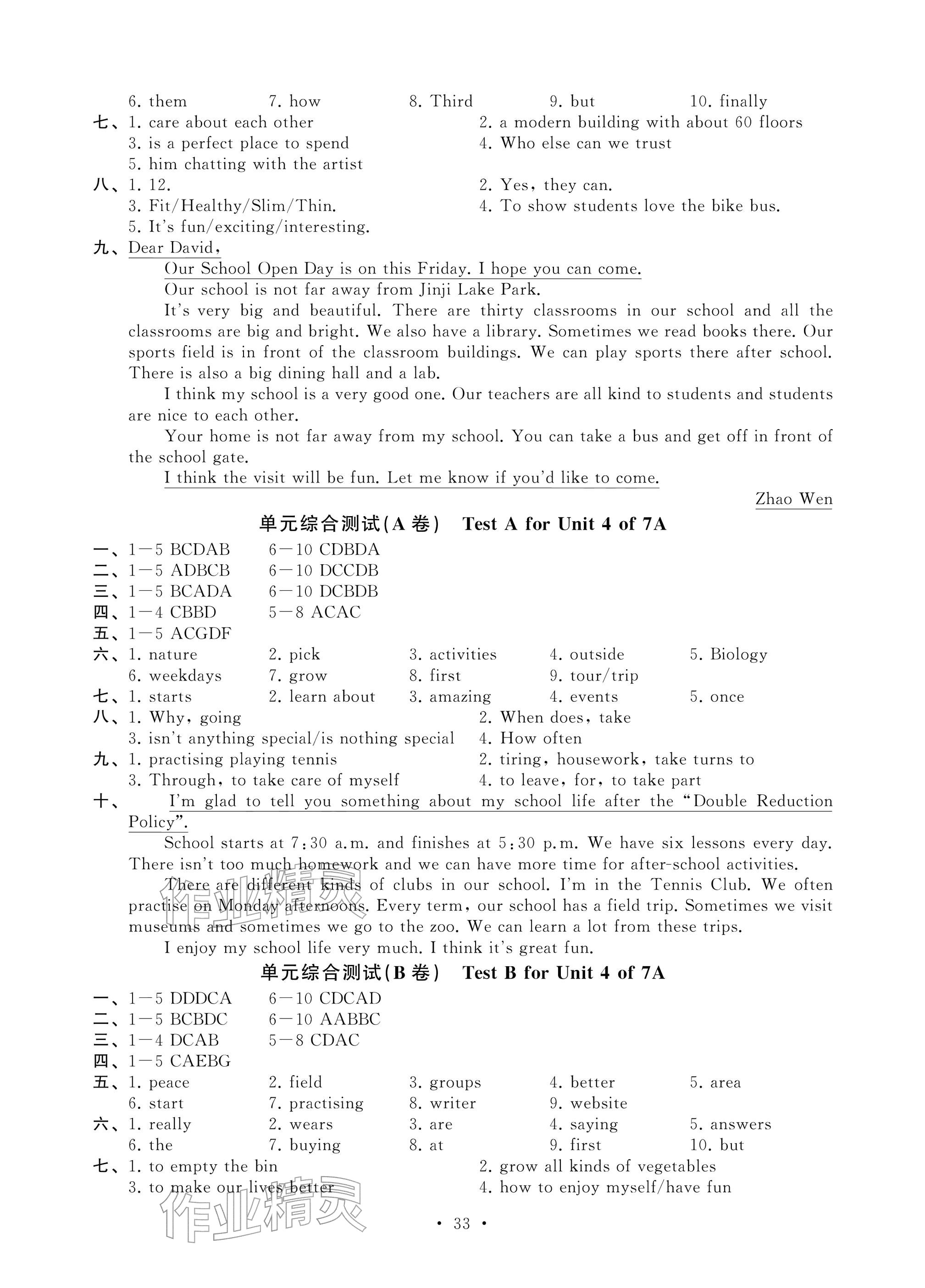 2025年综合素质随堂反馈七年级英语上册译林版苏州专版参考答案第25页