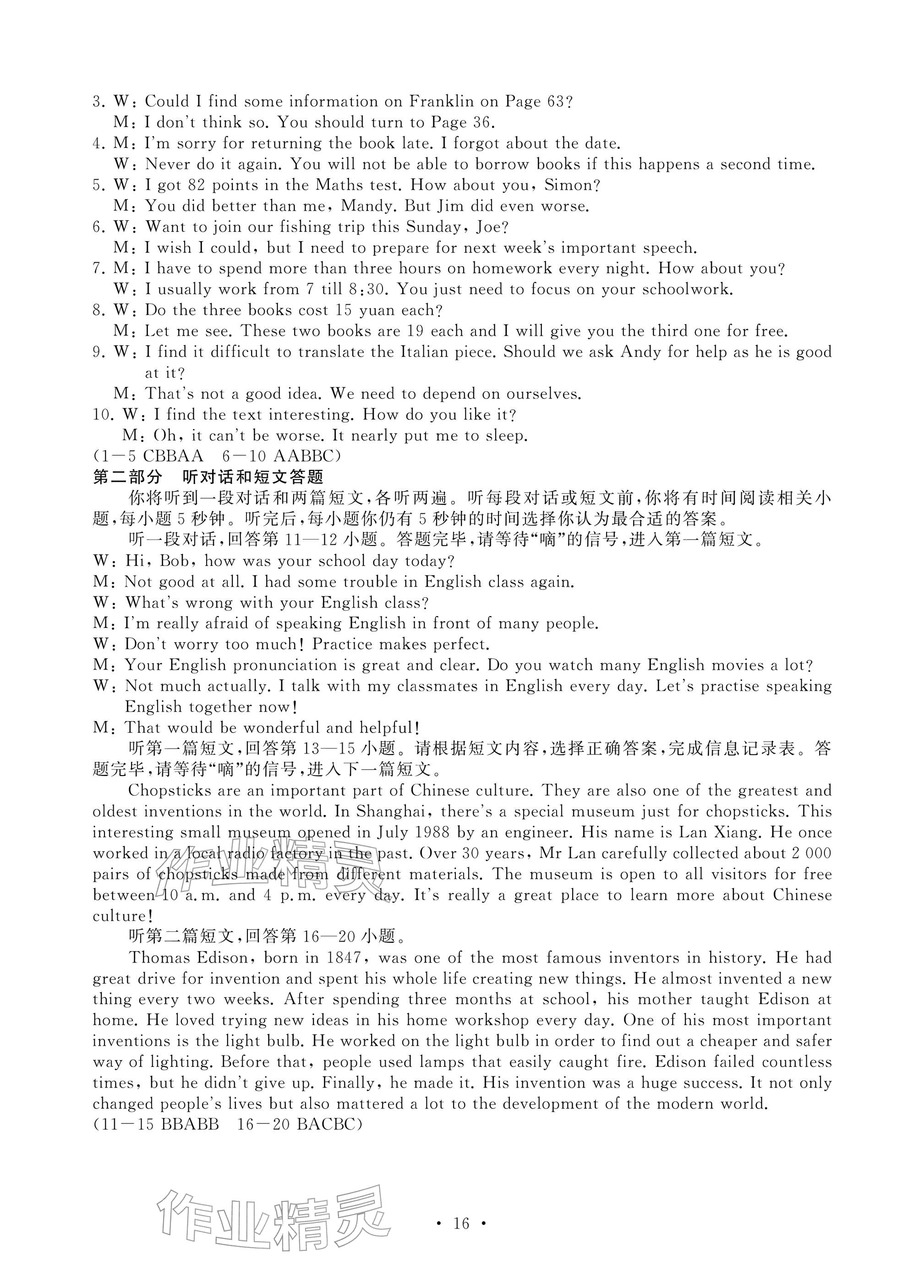 2025年综合素质随堂反馈八年级英语上册译林版苏州专版参考答案第8页