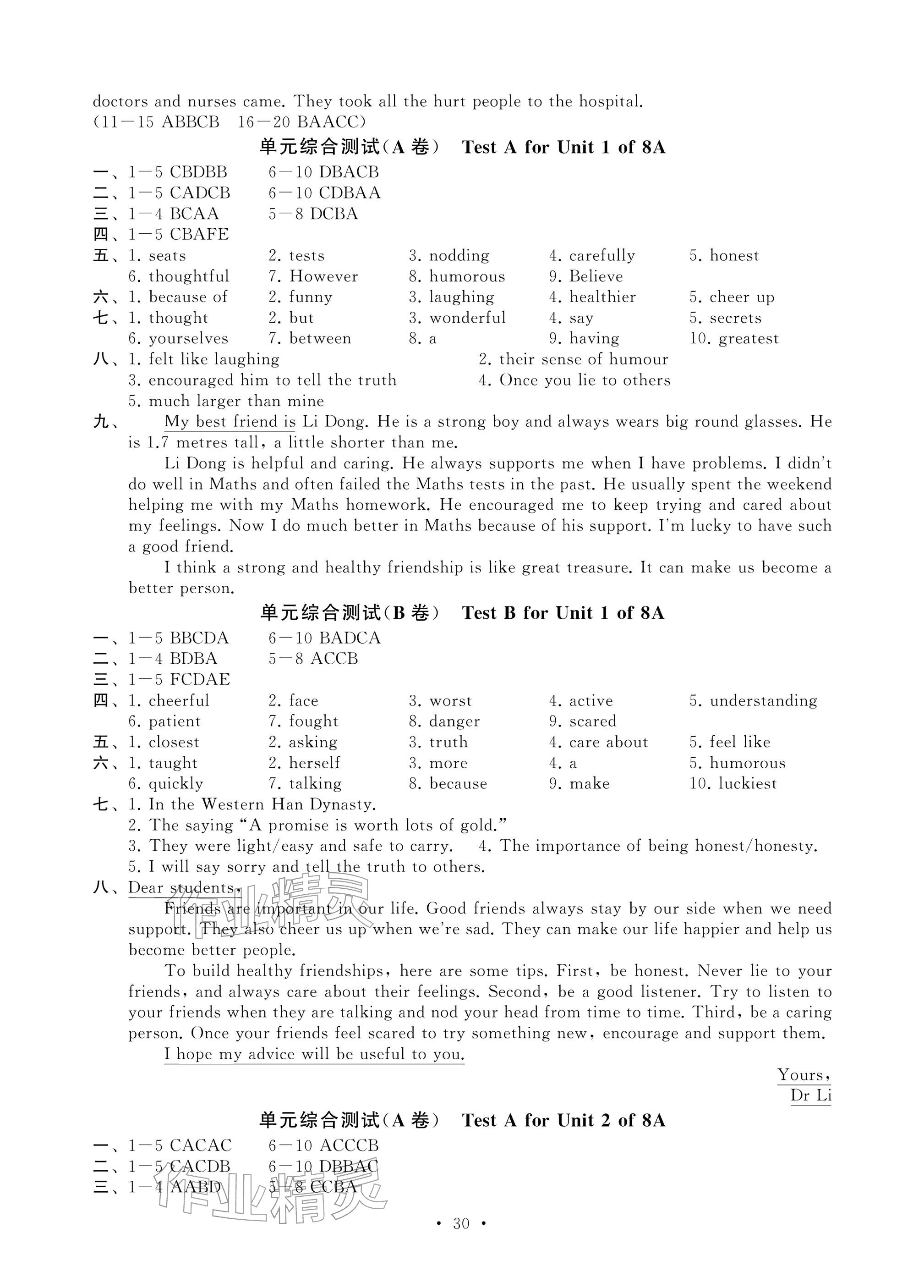2025年综合素质随堂反馈八年级英语上册译林版苏州专版参考答案第22页