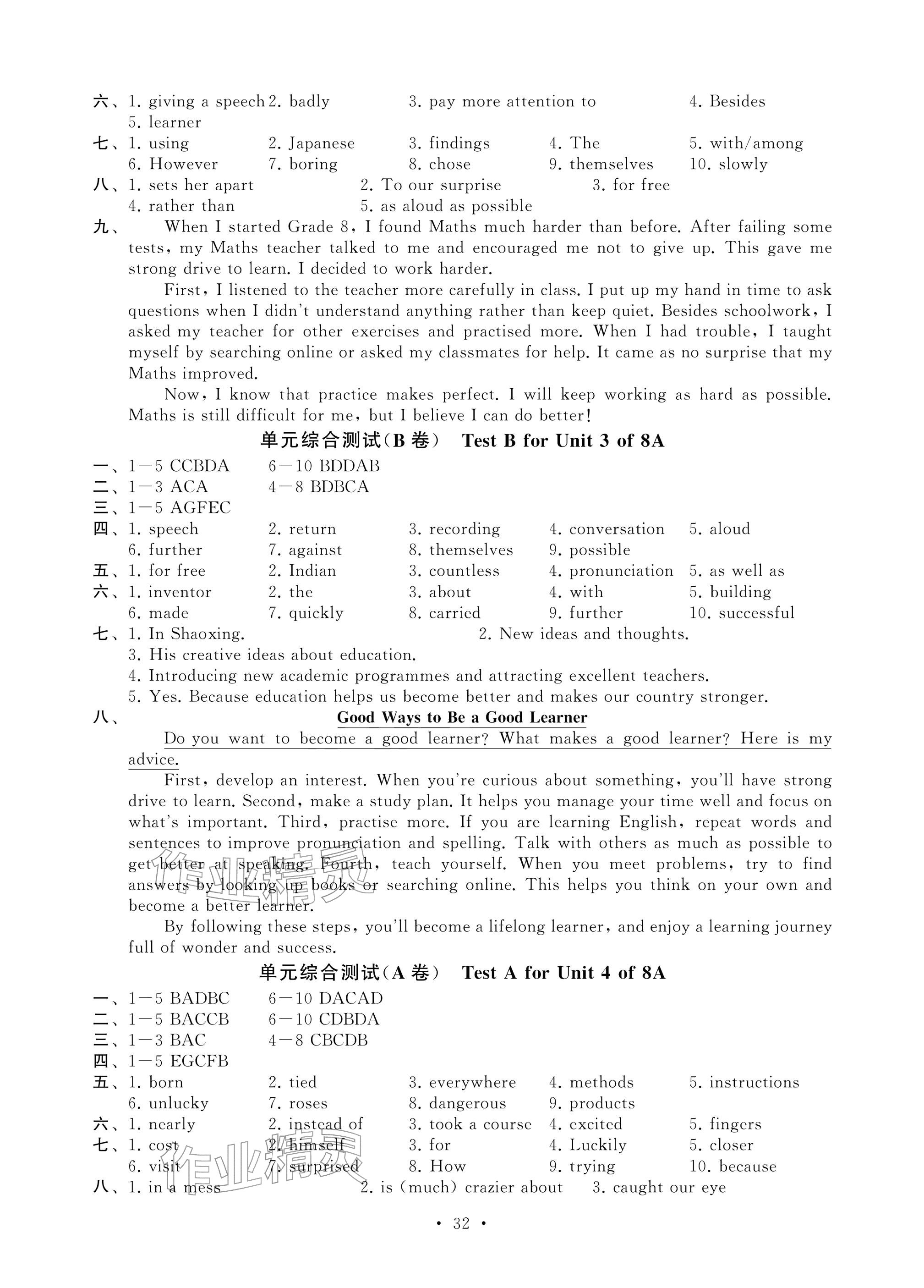 2025年综合素质随堂反馈八年级英语上册译林版苏州专版参考答案第24页