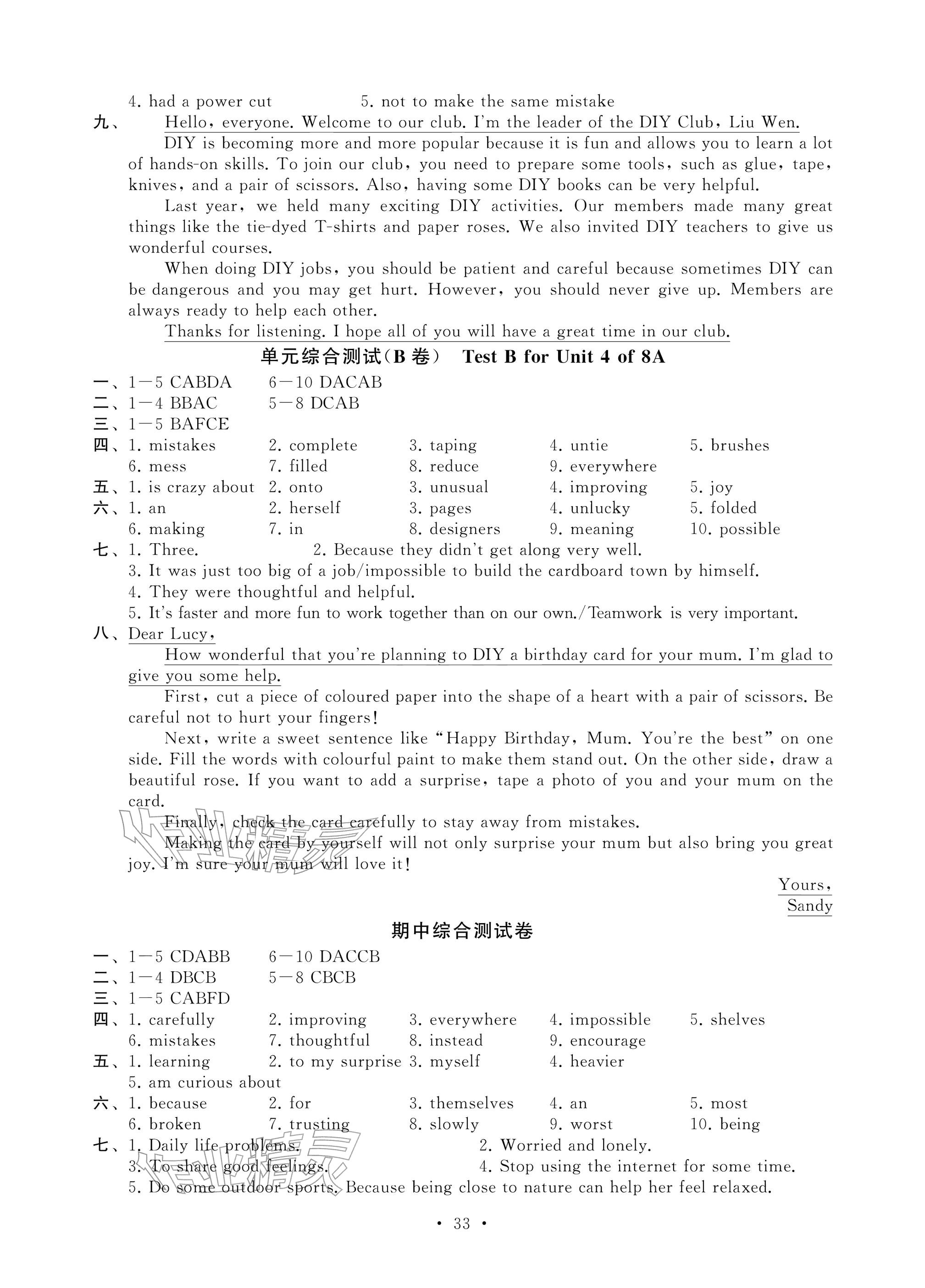 2025年综合素质随堂反馈八年级英语上册译林版苏州专版参考答案第25页